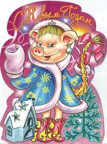 8Т-608	Мини-открытка "Свинка-снегурочка"