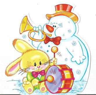 В-29	мини-открытка фигурная "Зайка и Снеговик"